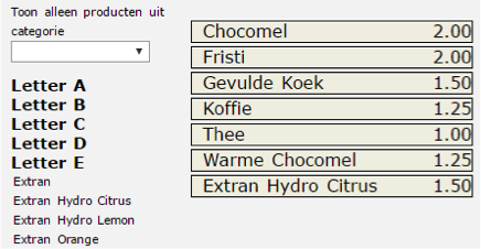 Heb je nieuwe producten in een categorie gezet, dan zijn de wijzingen nog niet direct zichtbaar. De Prijslijst refresht om de 15 minuten automatisch (indien er internetverbinding is), daarna wordt de wijziging doorgevoerd. Je kan ook de Digitale Prijslijst uit- en aanzetten om de wijziging op te halen.