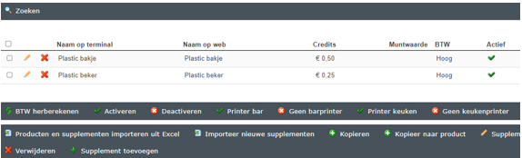 Wanneer je bijvoorbeeld ook plastic bakjes verkoopt, volg dan dezelfde bovenstaande stappen. In de beheeromgeving ziet je supplementenpagina er als volgt uit: