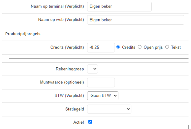 Let op: geef hier een minbedrag in wat gelijk is aan de meerprijs van het supplement van de wegwerpbeker.
