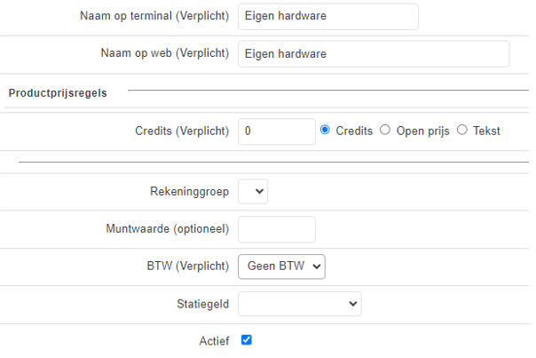 Wanneer je voor deze optie kiest, haal je tijdens het verkoopproces het supplement met de meerprijs voor het wegwerpmateriaal van de bestelling af. Vervolgens voeg je een supplement toe waarmee het duidelijk is dat klanten eigen 'hardware' voor de bestelling hebben.