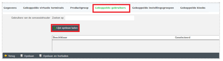 Stap 3. Vervolgens ga je naar het kopje 'Gekoppelde gebruikers' en druk je op de knop 'Lijst opnieuw laden'. Je krijgt een lijst te zien, onder het kopje 'beschikbaar', met alle gebruikers die je kan koppelen.