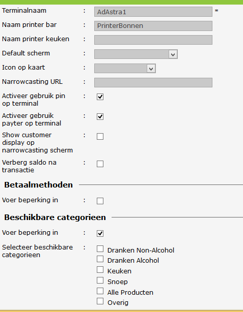 Indien je meerdere kassa's hebt, is het mogelijk om per kassa aan te geven welke productcategorieën je wilt tonen.