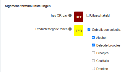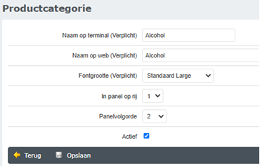 - Naam op terminal: De naam van de categorie zoals hij op de kassa staat.